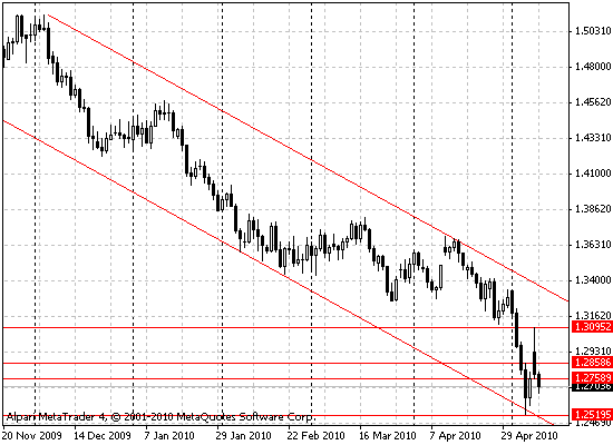 Евро продолжает снижаться на фоне роста опасений инвесторов, что пакет мер принятых странами Евросоюза для предотвращения кризиса в Европе, размером в 750 млрд. евро не решит проблем еврозоны.