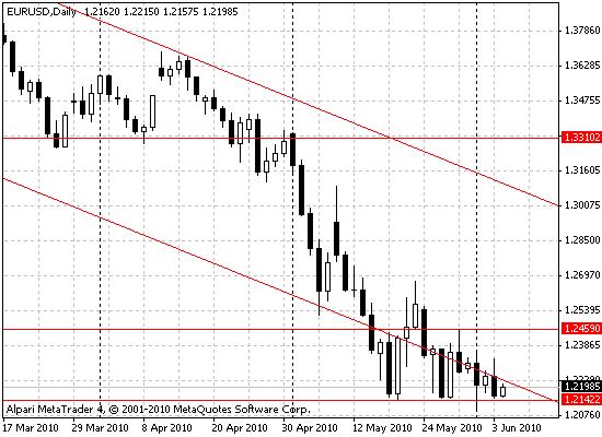 Следует отметить, что последние данные Евростат по ВВП Еврозоны не особо повлияли на валютные котировки. Напомним, что сегодня главные события на валютном рынке ожидаются во второй половине торговой сессии. Аналитики ожидают весьма позитивных данных по трудовому рынку США. Прогнозируется что данные покажут увеличение количества рабочих мест в мае в 1,5 раза, по сравнению с апрельскими показателями, до 465 000. А уровень безработицы снизиться на 0,1% с 9,9 процента.