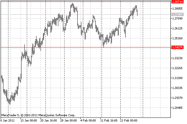 Между евро медленно и верно продолжает свой рост. Евро продолжает рост на фоне растущих ожиданий повышения ставки ЕЦБ. Кроме этого инвесторов успокоили заявления стран членов ОПЕК, которые накануне проводили экстренное совещание в связи с событиями в Ливии. Цены на нефть на мировом рынке продолжили рост на фоне продолжающихся беспорядков в Ливии и сегодня.
