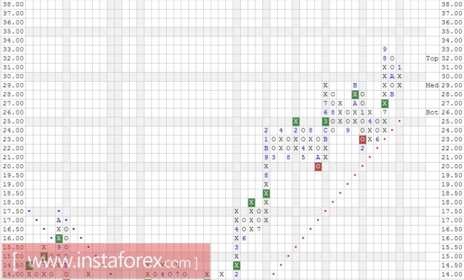 Видно, что продавцам так и не удалось закрепиться ниже уровня поддержки 26, вследствие чего возобновилось восходящее движение.