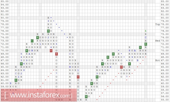Продажи рассматриваются только после преодоления уровня поддержки 67, что окончательно сменит тенденцию на нисходящую и откроет путь к отметке 62.