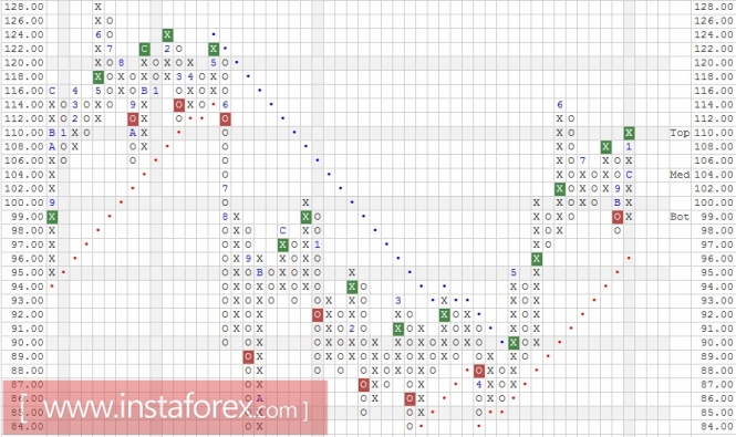 Первоначальной целью для покупателей выступает отметка 116, при подходе к которой рекомендуется закрыть 1/2 от общего объёма длинных позиций и переместить стоп-ордер на уровень безубыточности.