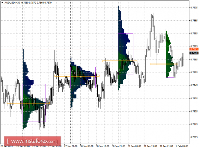 выше POC от 24 января – 0.7579, что приведет к продолжению роста AUD/USD в диапазон