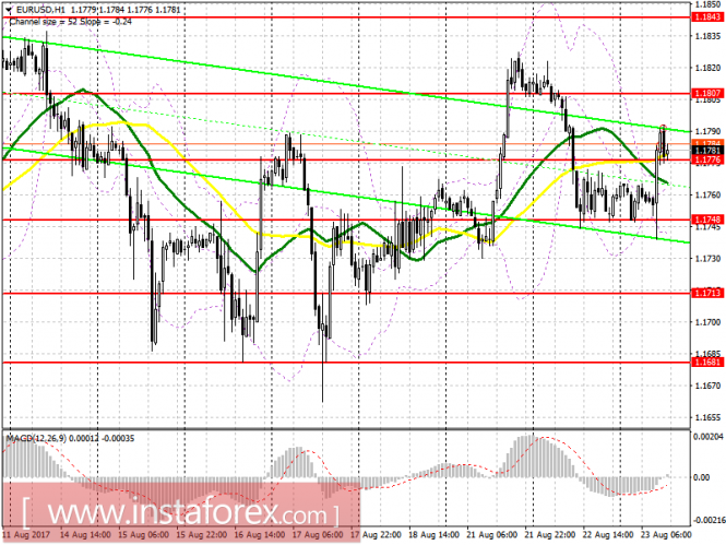 Покупатели сумели закрепиться на уровне 1.1776, и пока торговля ведется выше этой области, можно рассчитывать на продолжение восходящей тенденции по евро с целью обновления 1.1807 и дальнейшим выходом на 1.1843, где рекомендую фиксировать прибыль. В случае возврата евро под уровень 1.1776, покупки рекомендую отложить до формирования ложного пробоя на 1.1748 либо на отскок от 1.1713.