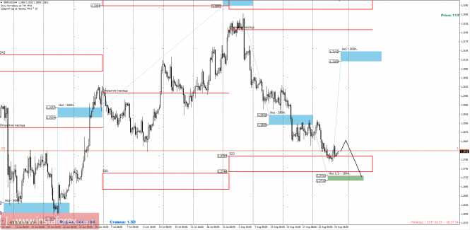Пара торгуется в пределах месячной КЗ августа 1.2797-1.2746, что говорит о вероятном появлении крупного спроса. Для совершения покупок потребуется дождаться формирования разворотной модели на младшем таймфрейме. Торопиться с покупками с текущих отметок не стоит, так как нисходящий импульс является сильной трендовой структурой, что говорит о высокой вероятности обновления месячного минимума как во внутридневной, так и в среднесрочной перспективе. НКЗ 1/2 1.2731-1.2715 остается основной целью нисходящего движения.