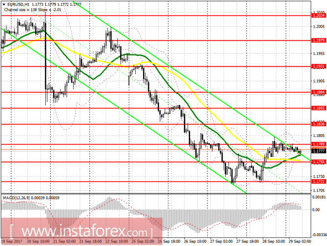 К покупкам евро лучше всего возвращаться после повторного роста и закрепления выше уровня 1.1789, от которого можно рассчитывать на более крупное восходящее движение в район сопротивления 1.1826 и 1.1855, где рекомендую фиксировать прибыль. В случае снижения евро в первой половине дня, поддержку может оказать промежуточный уровень 1.1756, но лучше всего открывать новые длинные позиции после обновления 1.1721.