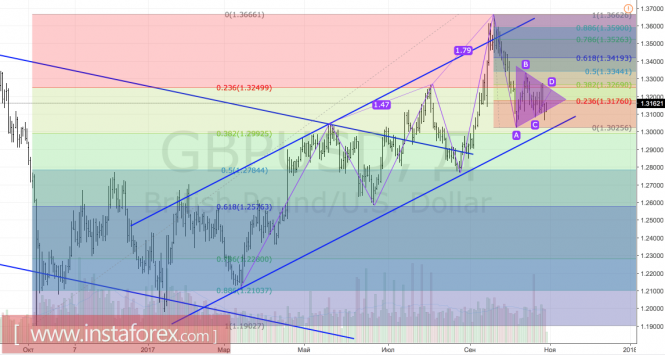 Технически неспособность «быков» по GBP/USD удержать котировки в пределах треугольника и выше сопротивления на 1,3175 станет свидетельством их слабости. Обновление октябрьского минимума откроет дорогу к 1,28. Напротив, прорыв сопротивления на 1,327-1,328 отсрочит поражение покупателей.