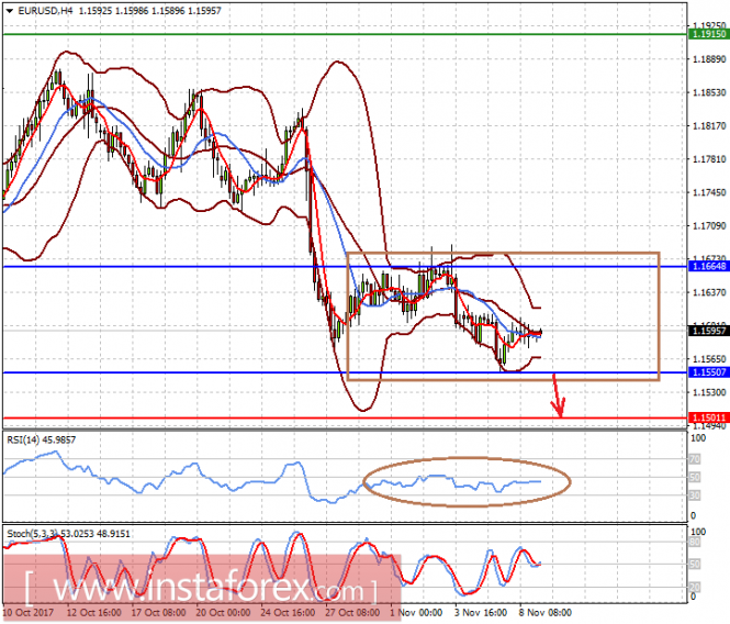 Пара EURUSD консолидируется в диапазоне 1.1550-1.1665 на волне отсутствия новых данных экономической статистики и важных событий на этой неделе. Но мы по-прежнему придерживаемся мнения, что пара имеет все шансы к дальнейшему снижению к уровню 1.1580 с перспективой падения до 1.1500.