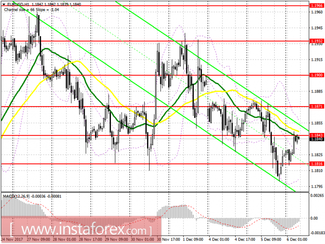 Закрепление выше 1.1843 будет первым сигналом к вероятному росту евро в первой половине дня с обновлением 1.1871 и основной целью выхода на более крупное сопротивление 1.1900, где рекомендую фиксировать прибыль. В случае снижения EUR/USD, смотреть длинные позиции можно после ложного пробоя 1.1816 либо на отскок от более крупного уровня поддержки 1.1774.