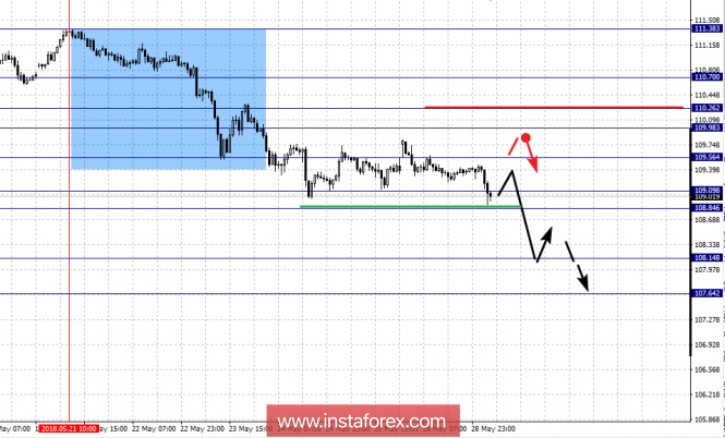 По паре Доллар/Иена ключевыми уровнями в масштабе являются: 110.70, 110.26, 109.98, 109.42, 109.56, 109.09, 108.84, 108.14 и 107.64. Здесь, мы следим за нисходящей структурой от 21 мая. Продолжения движения к низу, ожидаем после прохода ценой шумового диапазона 109.09 – 108.84, в данном случае цель – 108.14. Потенциальным значением для низа, считаем уровень 107.64, по достижении которого, ожидаем консолидацию, а также откат к верху.