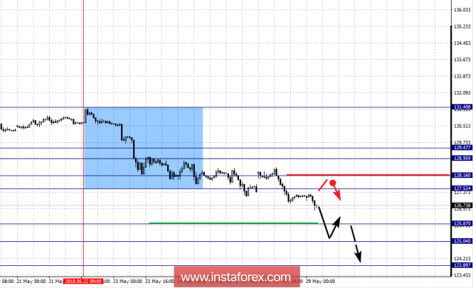 По паре Евро/Иена ключевыми уровнями в масштабе Н1 являются: 129.47, 128.95, 128.16, 127.52, 125.87, 125.04 и 123.89. Здесь, цена мы следим за нисходящей структурой от 22 мая. Краткосрочное движение к низу, ожидаем в диапазоне 125.87 – 125.04. Потенциальным значением для нисходящей структуры от 22 мая, считаем уровень 123.89, движение к которому, ожидаем после пробоя 125.04.