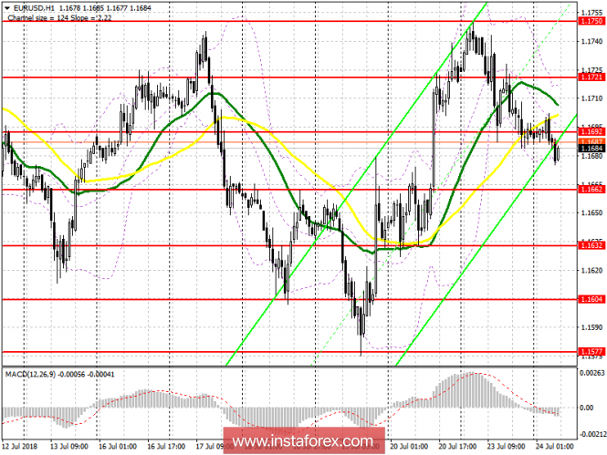Пока торговля ведется ниже 1.1692, давление на евро будет сохраняться, а неудачное закрепление выше этого диапазона станет хорошим сигналом к открытию коротких позиций с целью снижения в район минимума 1.1662 и 1.1632, где рекомендую фиксировать прибыль. В случае роста евро в первой половине дня выше 1.1692, продавать можно на отскок от сопротивления 1.1721