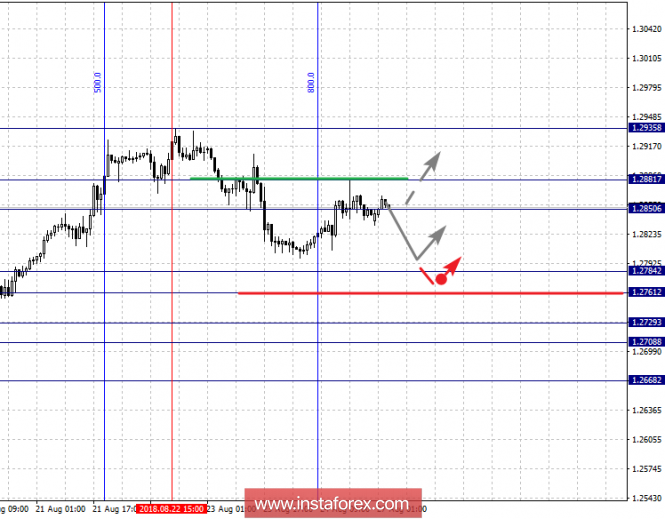 Краткосрочное восходящее движение, возможно в коридоре 1.2850 – 1.2881, последний уровень является ключевым сопротивлением для последующего развития восходящей тенденции, в данном случае цель – 1.2935.