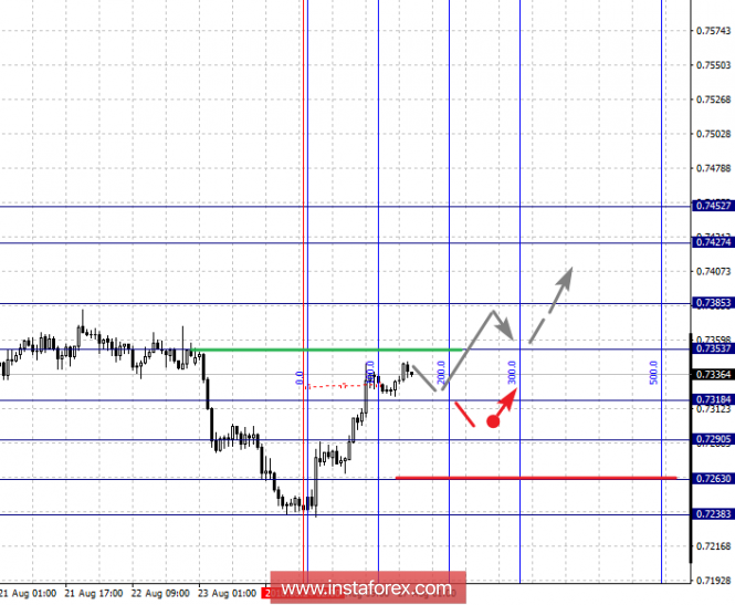 По паре Австралийский доллар/Доллар ключевыми уровнями в масштабе Н1 являются: 0.7452, 0.7427, 0.7385, 0.7353, 0.7318, 0.7290, 0.7263 и 0.7238. Здесь, цена формирует потенциал для восходящего движения от 24 августа. Продолжения развития данной структуры, ожидаем после пробоя 0.7353, в данном случае цель – 0.7385, возле этого уровня консолидация. Пробой уровня 0.7385 должен сопровождаться выраженным восходящим движением, здесь цель – 0.7427. Потенциальным значением для верха, считаем уровень 0.7452, по достижении которого, ожидаем откат к низу.