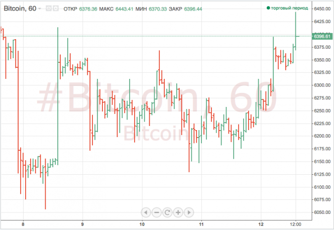 К 09:47 по московскому времени стоимость биткоина поднялась на 1,78%, до 6,413 тыс. долларов.