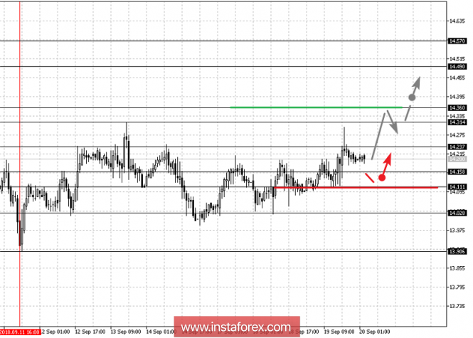 По Silver продолжения развития восходящей тенденции ожидаем после пробоя 14.23, уровень 14.11 является ключевой поддержкой. По Gold последующие цели определи от локальной восходящей структуры 17 сентября, уровень 1196.07 является ключевой поддержкой. По Oil цена развивает восходящую тенденцию от 7 сентября, продолжения движения кверху ожидаем после пробоя 72.41.