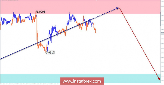 Упрощенный волновой анализ USD/CHF на неделю, от 4 декабря