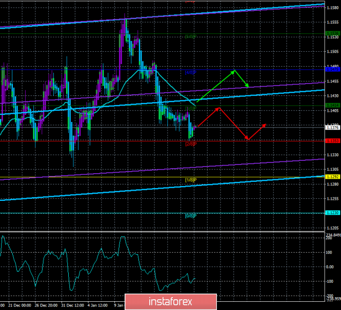 Последний торговый день минувшей недели закончился для пары EUR/USD очередным падением. Буквально еще неделю назад были все основания рассчитывать на дальнейшее укрепление европейской валюты, однако сейчас становится понятно, что без фундаментальной поддержки евро будет очень сложно показывать рост. Несмотря на то что никаких сверх оптимистических данных из Штатов сейчас также не поступает, всем ясно, что экономика этой страны остается гораздо более сильной, нежели экономика ЕС. А если Великобритания покинет блок без «сделки», то определенный удар будет нанесен и по экономике Евросоюза. Драги в одном из своих последних выступлений намекал на рецессию. О спаде в США многие эксперты говорят уже давно. Но даже в противостоянии двух спадов спрос наблюдается именно на американскую валюту. В пятницу был опубликован только один более или менее важный отчет – промышленное производство в США. Прирост в декабре составил 0,3%, что выше прогноза. На понедельник, 21 января, ни в США, ни в еврозоне не запланировано ни одного важного макроэкономического отчета. Таким образом, торги сегодня могут быть спокойными и низковолатильными. Пятничное падение пары только на первый взгляд кажется большим, на самом деле оно не превышает 40 пунктов. Просто в последние дни волатильность по паре сильно понизилась.