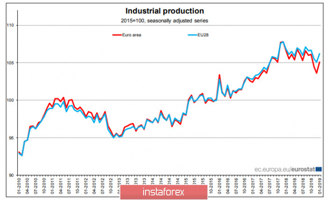 Объем промышленного производства в еврозоне вырос в январе на 1.4% относительно декабря, результат несколько превысил прогнозы, в годовом исчислении падение замедлилось с -4.2% до -1.1%. В то же время нужно отметить, что локомотив еврозоны Германия пока не может выйти из отрицательной зоны, в январе снижение составило 3.4%.