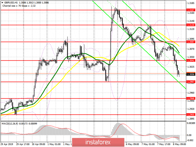 Быки не сумели удержаться выше важных уровней поддержки, на которые я обращал внимание в своем утреннем прогнозе. Отсутствия договоренностей по Brexit между двумя основными партиями Великобритании продолжает оказывать давление на пару. Основной задачей покупателей на вторую половину дня является возврат на сопротивления 1.3041. Лишь после этого можно рассчитывать на восходящую коррекцию в район максимума 1.3087, где рекомендую фиксировать прибыль. Также быкам потребуется много сил, чтобы удержаться во второй половине дня выше поддержки 1.2987, тест которой может состояться в ближайшее время. При сценарии ее пробоя, открывать длинные позиции лучше всего на отскок от минимума 1.2946.
