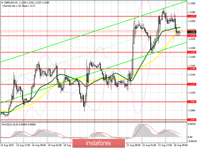 Быки не справились с задачей на первую половину дня, и после неудачной попытки роста выше сопротивления 1.2280 давление на фунт вернулось. На текущий момент разговоры вокруг достижения соглашения по Brexit начинают угасать, как и дальнейшее желание трейдеров покупать фунт. Быкам все также требуется прорыв и закрепление выше сопротивления 1.2275, так как лишь это сможет усилить спрос на GBP/USD, что приведет к обновлению новых максимумов в районе 1.2334 и 1.2387, где рекомендую фиксировать прибыль. Ложный пробой в районе поддержки 1.2232, после выхода отчета Durable Goods Orders по США, также будет хорошим сигналом на открытие длинных позиций в фунте. В ином случае покупать на отскок лучше всего от минимума 1.2195.