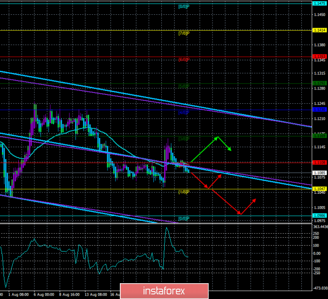 Ну что же, немного времени евровалюта провела выше скользящей средней линии. Буквально за сутки медведи вернули инициативу в свои руки и теперь пара евро/доллар вновь склоняется к падению. Мы не считаем, что в падении евро виноват «итальянский» кризис. Да, в свое время на курс евровалюты оказывал давление «греческий» кризис, потом были проблемы с некоторыми другими государствами ЕС, сейчас имеются Италия и Великобритания. В действительности влияют на непривлекательность евровалюты на валютном рынке низкие макроэкономические показатели состояния экономики Евросоюза, намерения ЕЦБ смягчить в ближайшее время и без того ультрамягкую монетарную политику, воскресить программу количественного стимулирования, начать программу долгосрочного кредитования коммерческих банков TLTRO, а также смена руководства ЕЦБ(место Марио Драги 31 октября займет Кристин Лагард). И мы считаем, что пока ситуация кардинально не измениться, например, не прекратиться замедление и снижение основных экономических показателей Еврозоны, рассчитывать на укрепление евро не приходиться.