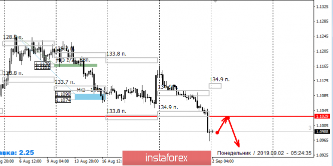 Альтернативной моделью станет продолжение падения с текущих отметок без формирования коррекционной модели. Это не позволит войти в продажи, так как вероятность возврата выше 90%. Для входа в короткую позицию обязателен коррекционный рост. Наиболее выгодные цены на продажу находятся в пределах НКЗ 1/2 1.1051-1.1043.