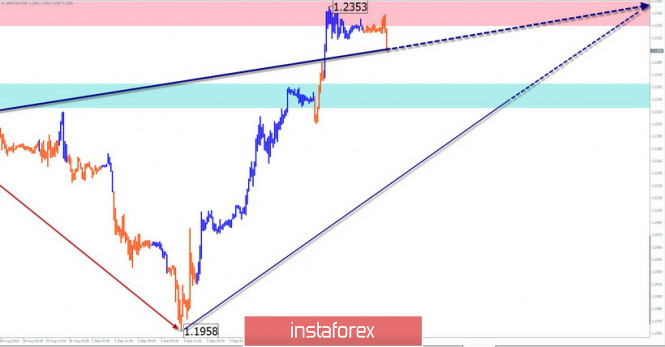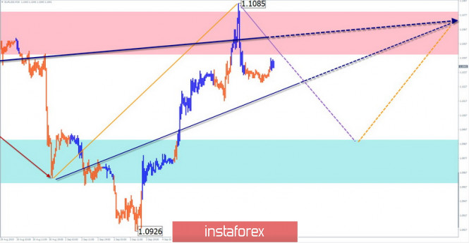 Бычья волна от 3 сентября превысила волновой уровень предыдущей волны снижения. Свое начало текущая волновая конструкция ведет от 30 июля. Это восходящая растянутая горизонтальная плоскость, имеющая вид расширяющегося треугольника. Предварительная зона завершения оценивается в районе начала 126-й ценовой фигуры. Со вчерашнего дня цена корректируется вниз.