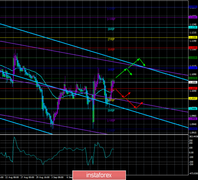 Вчера вечером мы писали о том, что уровень 61,8% по Фибоначчи - 1,0997 – чрезвычайно важен для определения дальнейшей динамики пары EUR/USD. Также мы отмечали, что имеет большое значение и сильный паттерн «двойное дно». Исходя из этих двух технических факторов, говорящих в пользу формирования восходящего тренда, мы делали вывод о практически неизбежном укреплении евровалюты в ближайшие дни. Однако, мы ожидали, что рост евро совпадет с оглашением результатов заседания ФРС, на котором с высокой долей вероятности, будет принято решение о снижении ключевой ставки на 0,25%. Или же хотя бы начнется за 8-10 часов до пресс-конференции Джерома Пауэлла. На практике, как это часто бывает, вышло немного иначе. Рост евровалюты начался, но начался он ночью 18 сентября, на азиатской торговой сессии. В итоге пара евро/доллар вновь закрепилась выше скользящей средней линии, изменив текущую тенденцию на восходящую.