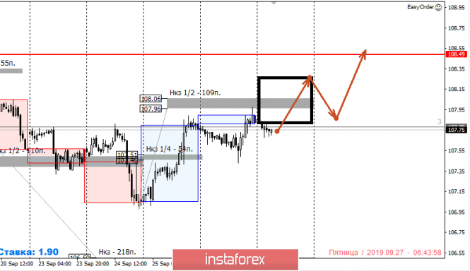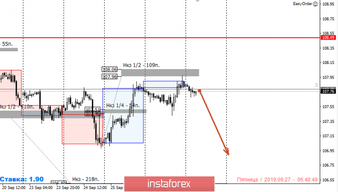 Вчерашний тест НКЗ 1/2 108.06-107.96 дал возможность войти в короткую позицию. Целью нисходящей модели является недельная КЗ 106.50-106.31. Работа в нисходящем направлении будет оставаться приоритетной до тех пор, пока пара торгуется ниже уровня 108.06. Потенциальный профит составляет 120 пунктов, поэтому поиск точки входа со стопом меньше 40пп даст возможность получить выгодное отношение риска к прибыли.