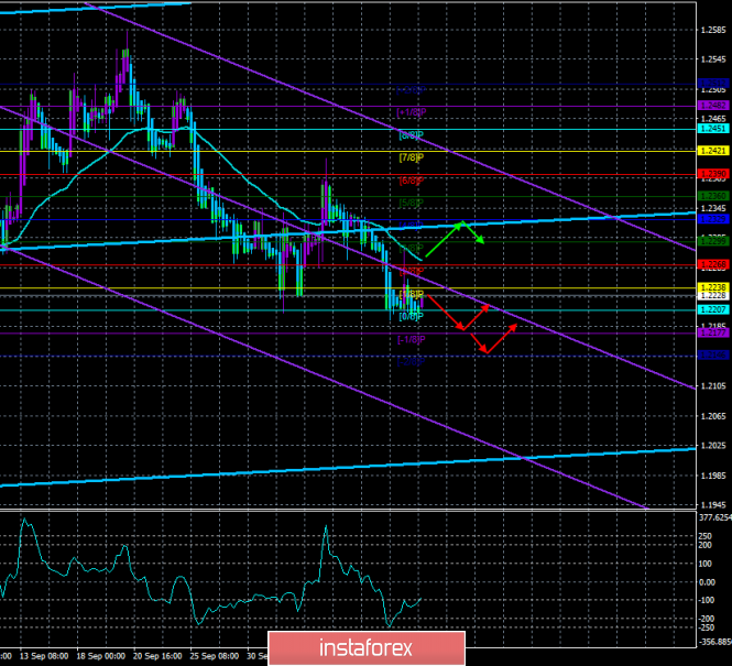 Ну а фунт стерлингов, тем временем, в паре с долларом США продолжает нисходящее движение, потому что делать ему больше нечего. Каковы сейчас основания для укрепления британской валюты? Экономических отчетов в последнее время не было ни в Америке, ни в Британии. Brexit стоит на паузе. Политика Бориса Джонсона не приводит ни к каким позитивным для страны результатам. В такой ситуации трейдерам только и остается, что планомерно избавляться от фунта стерлингов. Таким образом, ничего другого мы сейчас от пары фунт/доллар не ждем.