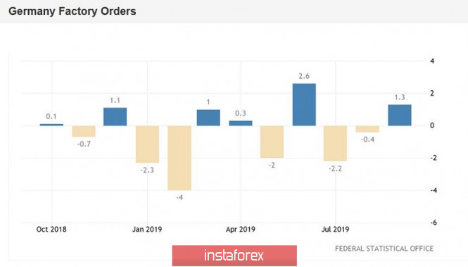 Поэтому существенный (и неожиданный) рост производственных заказов в Германии может послужить сигналом к восстановлению немецкой экономики, тем более в свете относительно неплохих данных по росту ВВП еврозоны в третьем квартале (0,2% кв/кв при прогнозе 0,1 кв/кв и 1,1% г/г при прогнозе 1,1% г/г). Так, немецкий показатель в сентябре (в месячном выражении) подскочил сразу на 1,3% при скромном прогнозе роста всего на 0,1%. Здесь стоит отметить, что в июле и августе этот показатель, являющийся опережающим индикатором динамики промышленного производства, находился в отрицательной области.