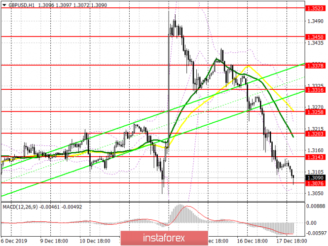 Думаю, не многие ожидали такого крупного падения фунта после победы Консервативной партии Великобритании. Спешка Бориса Джонсона по выводу страны из состава ЕС не прибавляет инвесторам уверенности. Сейчас медведи нацелены на пробой поддержки 1.3076, что приведет к нисходящей тенденции в район минимумов 1.3013 и 1.2952, где рекомендую фиксировать прибыль, так как на этих уровнях может быть образована бычья дивергенция на индикаторе MACD (часовой график). При попытке быков вернуться в рынок на фоне хорошей инфляции по Великобритании, медведи проявят активность на уровне 1.3143, но открывать оттуда короткие позиции лучше всего при условии формирования ложного пробоя. Продавать фунт сразу на отскок можно после обновления максимумов 1.3203 и 1.3258.