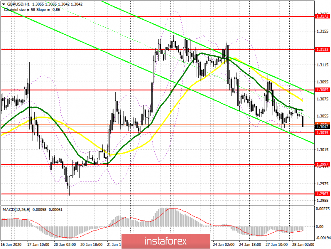 GBP/USD: план на европейскую сессию 28 января. Фунт продолжит снижение, но только если быки упустят поддержку 1.3035