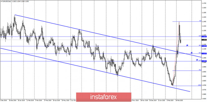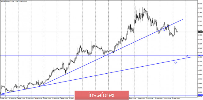 EUR/USD. 12 марта. Сигнал к продажам получен! Цель – 1,1100. Новости от ЕЦБ могут поддержать падение пары