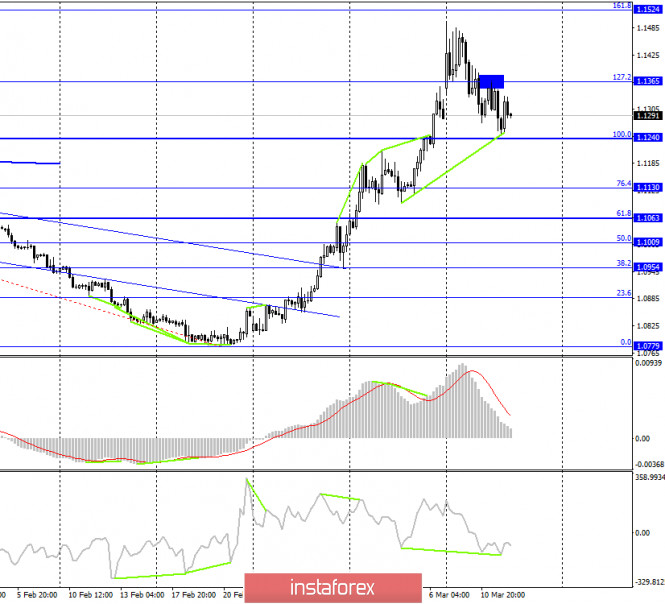 Главная  /  Форекс аналитика  /  EUR/USD. 12 марта. Сигнал к продажам получен! Цель – 1,1100. Новости от ЕЦБ могут поддержать падение пары