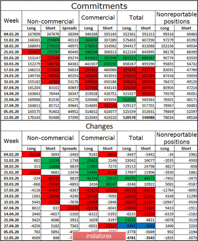Последний отчет COT, вышедший в пятницу, вновь показал минимальные изменения. На отчетной неделе от 12 мая общее количество контрактов на покупку и продажу среди крупных игроков рынка сократилось на 4781 и 3543 соответственно. Таким образом, активность профессиональных участников рынка снижается. В принципе, это отлично видно и по самому графику пару, особенно по 4-часовому. В последние недели пара торгуется в весьма узком боковом коридоре. При этом крупные трейдеры (спекулянты) начали наращивать Long'и, а вот группа «Commercial», наоборот, от контрактов на покупку избавлялась. Исходя из этого, можно сделать вывод, что спекулянты начинают менять свое настроение на «бычье». Большее количество контрактов, сосредоточенных на их руках, - также контракты на покупку. Таким образом, я бы сказал, что отчет COT дает очень даже неплохие шансы евровалюте на рост в ближайшие недели. Но графический анализ также очень сильный и закрытие котировок пары под линией тренда сработает в пользу американской валюты.
