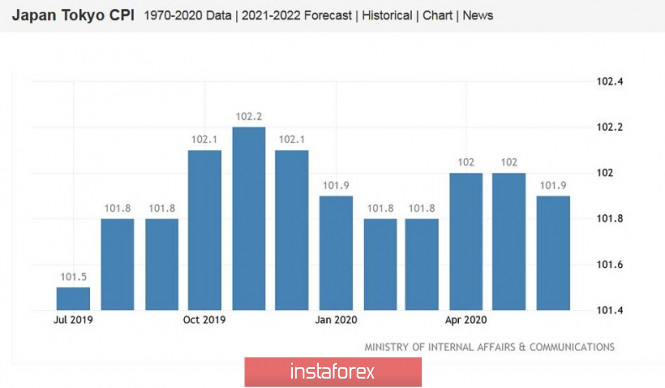И всё же начнём с утренних событий, которые, на мой взгляд, были незаслуженно проигнорированы рынком. Так, общий индекс потребительских цен в японской столице вышел на отметке 0,3%, тогда как большинство экспертов ожидало его увидеть на более высоком уровне – на отметке 0,6%. Без учёта цен на свежие продукты питания этот индикатор вышел на прогнозном уровне (0,2%), без учёта цен на продукты питания и энергоносители – с небольшим превышением прогноза (на отметке 0,4%). Здесь стоит отметить, что индекс потребительских цен Токио считается опережающим индикатором для определения динамики цен по всей стране, поэтому исходя из опубликованных цифр, можно сделать определённые выводы. И эти выводы – не в пользу иены. Инфляционная динамика выглядит крайне слабо, и это при том что сегодня были опубликованы данные за июнь, тогда так Япония ослабила карантинные ограничения ещё в конце мая.