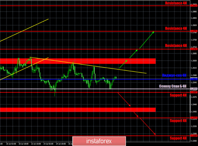 Что касается фундаментального фона для пары GBP/USD, то он опять-таки не особо поменялся за выходные. Мы уже неоднократно говорили, что наиболее вероятной причиной укрепления фунта в последние недели были сразу несколько видов кризиса в США. В частности эпидемиологический, который может очень негативно отразится на экономике страны. Так вот ситуация с «коронавирусом» в США не изменилась. По-прежнему продолжают ставится антирекорды по количеству новых случаев заболевания, некоторые штаты продолжают усиливать карантинные меры, Дональд Трамп же отказывается вводить страну в новый «локдаун», считая, что это похоронит американскую экономику. Надо отдать должное американскому президенту. По последней информации, он отменил митинги, посвященные его предвыборной кампании, и собирается проводить телефонные встречи и общение со своими избирателями. Что ж, хотел ли этого сам президент или нет, но это явно верное решение для страны, где каждый день фиксируется по 70 тысяч новых заболеваний COVID-2019. В Великобритании же и вовсе никаких новостей сейчас нет. На прошлой неделе было опубликовано несколько крайне важных отчетов, однако трейдерами они были проигнорированы, а сами по себе отразили далеко не самое лучшее состояние экономики. Участники рынка по-прежнему больше интересуются переговорами с Брюсселем и перспективами подписания торгового соглашения.