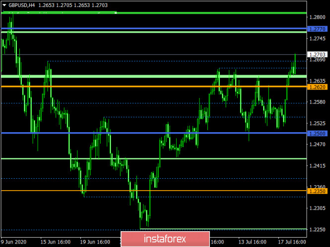 Валютная пара фунт/доллар проявляет высокую активность, на основе которой возник инерционный восходящий ход, который привел покупателей в район максимума 16 июня 1,2690, и на этом спекулянты не останавливаются. Можно предположить, что перекупленность фунта стерлинга уже имеет место на рынке, но в случае удержания спекулятивного интереса цена может направиться в сторону диапазонного уровня 1,2770.