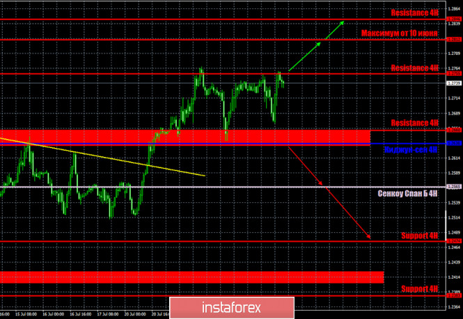 Фундаментальный фон для пары GBP/USD в данное время остается положительным, но только за счет событий, происходящих в США, о которых мы пишем практически каждый день. На самом деле ничего оптимистичного не поступает ни из Великобритании, ни из США. Британская экономика продолжает сокращаться. Если Америка столкнулась в данное время с четырьмя кризисами, то Британия столкнулась с тремя экономическими кризисами. Речь идет о кризисе, вызванном пандемией, спаде, вызванном Brexit, и спаде, который обязательно случиться из-за отсутствия торговых соглашений с США и Евросоюзом, о которых Борис Джонсон регулярно говорит, но при этом переговоры не продвигаются вперед. Вот и получается, что до тех пор, пока трейдерам будет хватать негативного фона из-за океана, фунт стерлингов будет сохранять восходящий настрой. Как только трейдеры вспомнят, что в Великобритании экономическая ситуация еще хуже(возможные потери в 2020 году 14%, тогда как в Штатах ожидается спад всего на 5-6%), это может тут же вызвать серьезные распродажи британской валюты. В пятницу, мы рекомендуем трейдерам обратить внимание на отчеты по деловой активности в секторах производства и услуг Великобритании, а также на изменение розничных продаж. Сильные цифры в этих отчетах могут прибавить уверенности покупателям, а пара фунт/доллар сможет продолжить восходящее движение. В то же время аналогичные отчеты по деловой активности в США вряд ли вызовут сильную реакцию участников рынка.
