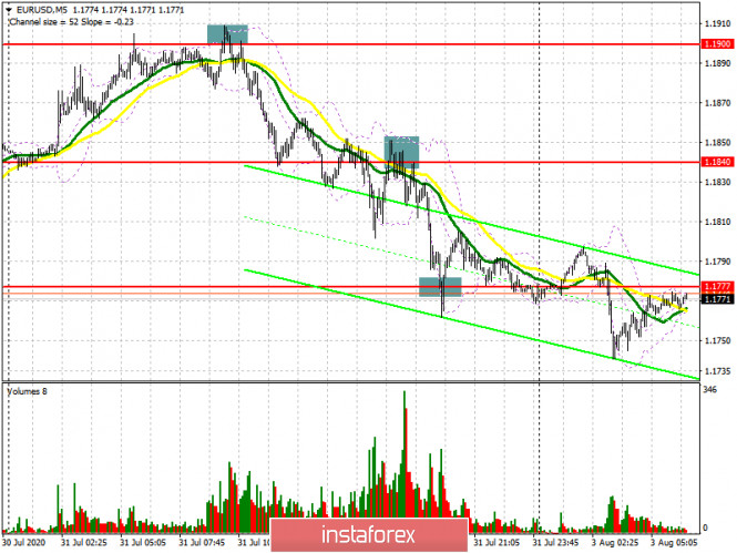 В пятницу, несмотря на фундаментальную статистику по еврозоне, было образовано несколько очевиднейших сигналов на продажу европейской валюты, о которых мы с вами сейчас поговорим более подробно. Если вы посмотрите на 5-минутный график и вспомните мой прогноз, то увидите, как формирование ложного пробоя после неудачной попытки пробиться выше сопротивления 1.1900 привело к образованию хорошей точки входа в короткие позиции и к снижению EUR/USD в район поддержки 1.1840. Затем уже во второй половине дня после неудачной попытки быков вернуться в рынок и от этого уровня был образован еще один сигнал на открытие коротких позиций, и лишь от области 1.1777 можно и нужно было покупать евро сразу на отскок. На текущий момент акцент сделан именно на этом диапазоне. Скорее всего, быкам удастся его отбить в первой половине дня, что образует сигнал на покупку евро. Однако многое будет зависеть от того, какие сегодня выйдут отчеты по производственной активности в еврозоне. Более медленное восстановление не позволит быкам пробиться выше сопротивления 1.1840, где рекомендую фиксировать прибыль. В случае снижения EUR/USD и дальше, рекомендую рассматривать покупки только после формирования ложного пробоя в районе поддержки 1.1704 либо открывать длинные позиции сразу на отскок от минимума 1.1648 в расчете на коррекцию 25-30 пунктов внутри дня.