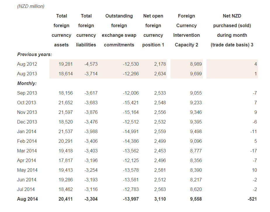 Действия ЦБ без сомнений ударят по тем керри трейдерам, занявшими в более дешевых валютах вроде иены для покупки более доходных вроде киви. Валютные инвесторы ставили на киви, так как в отличие от США и еврозоны, где стоимость кредитов ультранизкая, РБНЗ повышал процентные ставки четыре раза в этом году, добравшись до 3.5%. Господин Уилер напомнил им в заявлении на прошлой неделе о том, что прошлый опыт подтверждает: когда новозеландский доллар начинает падать с необоснованных и неустойчивых уровней, конечные корректировки могут быть весьма большими. Таблица демонстрирует все продажи и покупки валюты РБНЗ.