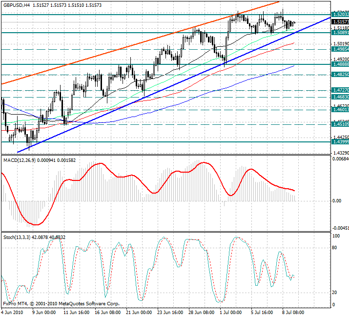 Обратив внимание на 4х часовой график, можно заметить, что ярко выраженный восходящий тренд сохраняется, но уже вторую неделю торги не выходят за рамки ценового диапазона 1.5090-1.5200. Это в свою очередь сигнал о том, что на рынке форекс в данной валютной паре сохраняется краткосрочная неопределенность...