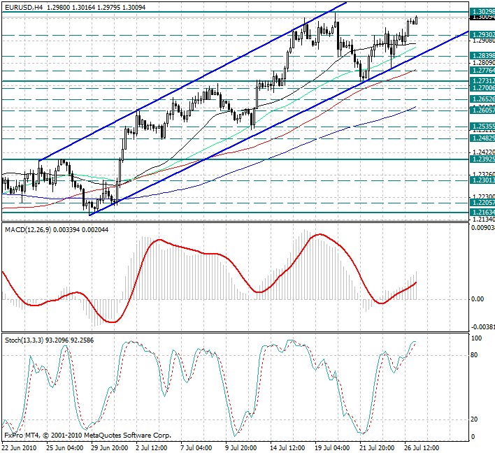 Начнем с того, что наш вчерашний прогноз подтвердился - пробой уровня сопротивления 1.2950 привел к усилению бычьих настроений и курс валюты направился к локальному максимуму 1.3000/30...
