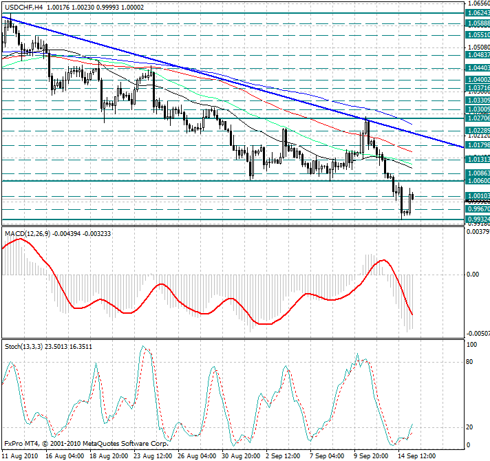 Начнем с того, что наш вчерашний прогноз подтвердился - пробой уровня поддержки 1.0000 привел к усилению медвежьих настроений и отработка ранее намеченных целей 0.9970 и 0.9950 завершилась в начале американской сессии вторника. Падение доллар/франка замедлилось лишь возле уровня поддержки 0.9930, после чего началась коррекция, которая продолжается до сих пор...