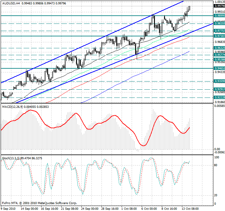 Курс валюты по-прежнему расположен выше скользящих средних с периодами 34, 55, 89 и 144, которые направлены вверх и указывают на сохраняющиеся бычьи настроения, а так же являются рядом уровней поддержки 0.9845, 0.9790, 0.9730 и 0.9610/00.