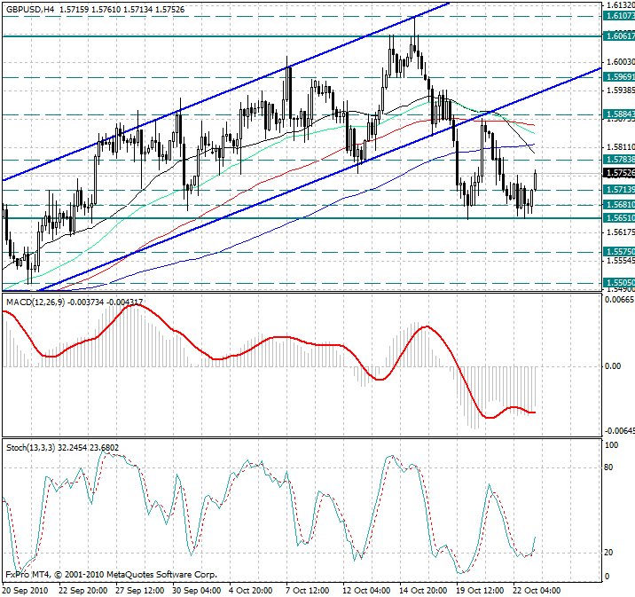 Обратив внимание на 4х часовой график, можно заметить, что курс валюты нашел сильную поддержку на уровне 1.5650, после чего начал стремительно отыгрывать ранее понесенные потери...