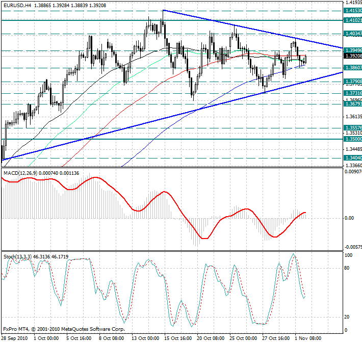 1. Пробой уровня сопротивления 1.3950 и рост евро к уровням 1.4000/10 и 1.4040/50.