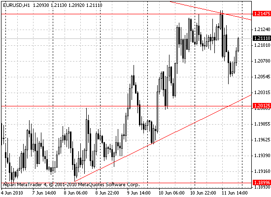 В четверг же глава ЕЦБ повысил прогноз роста европейской экономики. до 1,0% с ранее ожидавшегося увеличения на 0,8%. Прогноз роста на 2011 г., напротив, был снижен до 1,2% с 1,5%, что обусловлено слабым внутренним спросом. В то же время Банк повысил прогноз потребительской инфляции до 1,5% в текущем году и 1,6% в будущем году. Предыдущий прогноз предполагал рост потребительских цен на 1,2% и 1,5% соответственно.